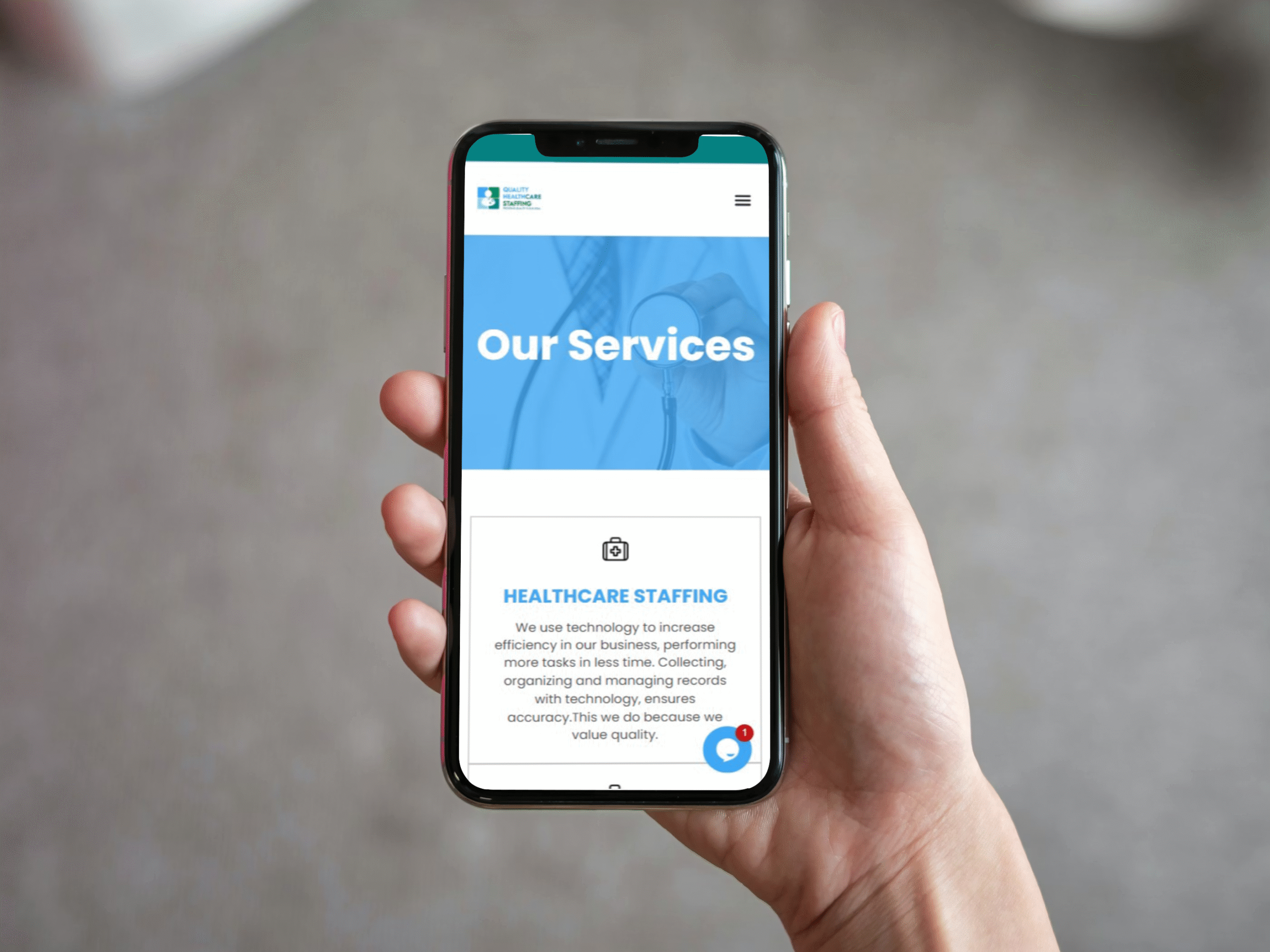 1. Delivered a professional and clean website that clearly conveys Quality Healthcare Staffing’s mission, values, and industry expertise.